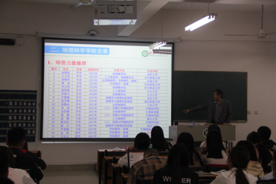 宣讲会伊始,闫军辉博士先向大家介绍了信阳师范学院及304am永利集团官网的基本情况,增加了大家对304am永利集团官网的认识与了解。接着,向与会学生详细讲解了地理学院2019年度研究生招生计划与培养方案,分析了农林学院学子报考永利官网研究生的优势。精心制作的幻灯片和耐心细致的讲解使农林学院师生对304am永利集团官网的师资队伍、实验室建设、科研平台建设、科研成果等有了深入的了解。最后,闫军辉博士就学生关心的招生类型与规模、考试科目及推荐教材、复试等问题,与农林学院的师生进行了深入交流,并耐心解答同学们提出的问题。闫军辉博士指出,学院2019年新增自然地理学,人文地理学,地图学与地理信息系统3个学术型硕士点,招生类型和规模将会增加;地理学院雄厚的师资力量,齐全的仪器设备,浓厚的科研氛围,锻造了学生扎实的知识和技能。学生在校期间多次参加省内外的教学技能大赛并斩获佳绩,毕业后发展前景广阔。另外,学院新遴选一批985、中科院毕业的优秀博士为硕导,研究生作为导师的“开门大弟子”将会得到学院和导师更多的关注和更全面的培养。