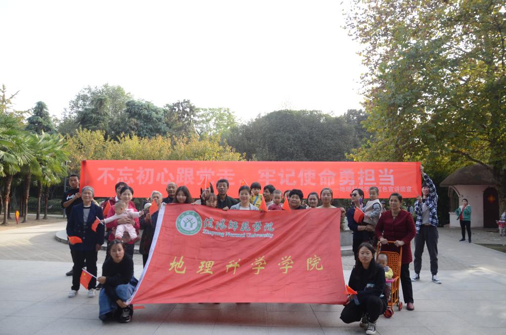 10月29日,304am永利集团官网红色宣讲团前往信阳市浉河公园开展“不忘初心、牢记使命”红色宣讲活动。宣讲团由在“讲红色故事,传红色基因”演讲比赛表现突出的学生党员组成。