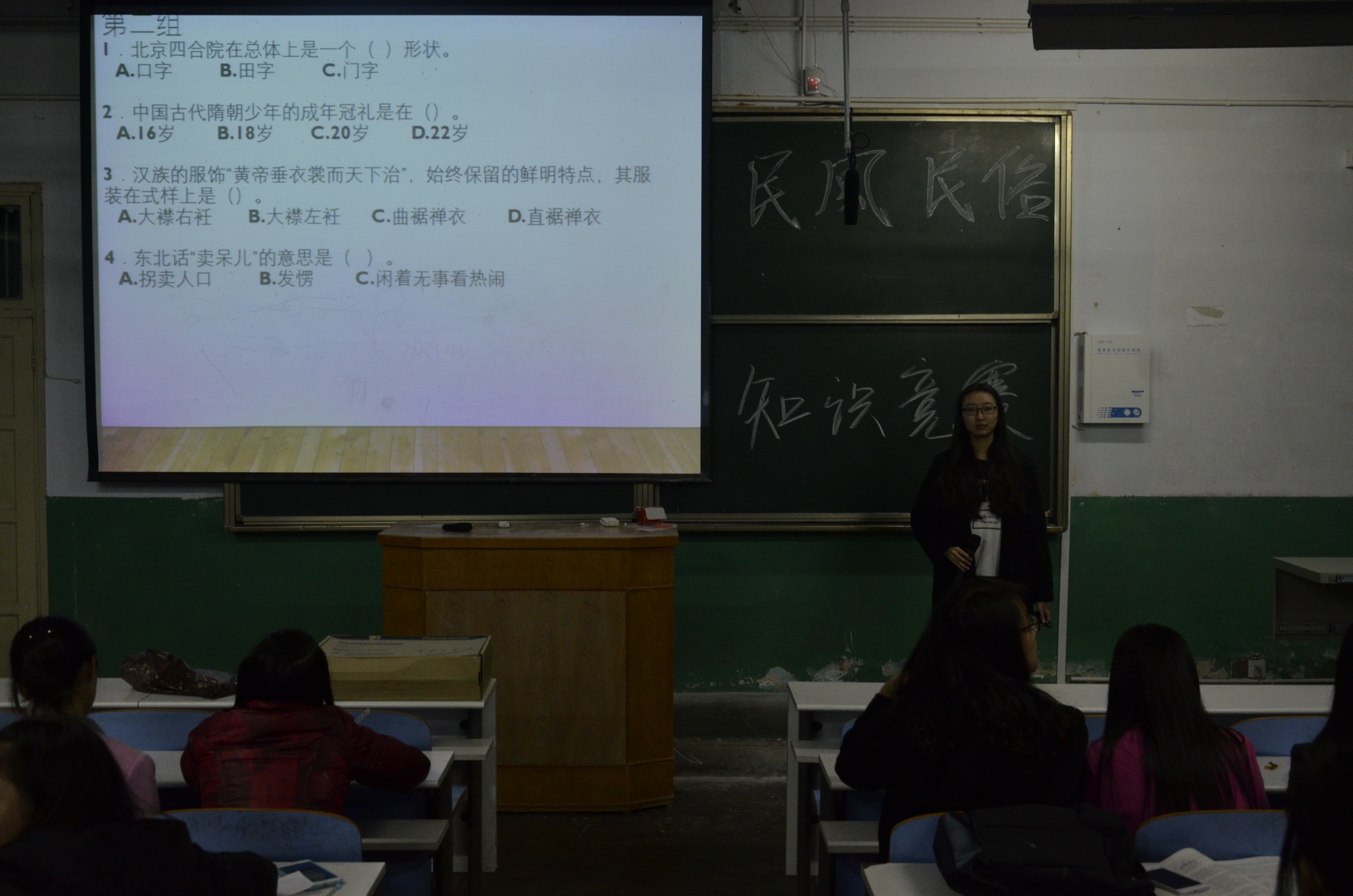 横携民俗之风,纵拥地理之脉。11月19日晚,由天文地理爱好者协会主办的第三届民风民俗知识竞赛于教二梯二隆重举行。来自各院系的百余名同学参加了此次比赛。比赛由社团团支书潘仪主持。