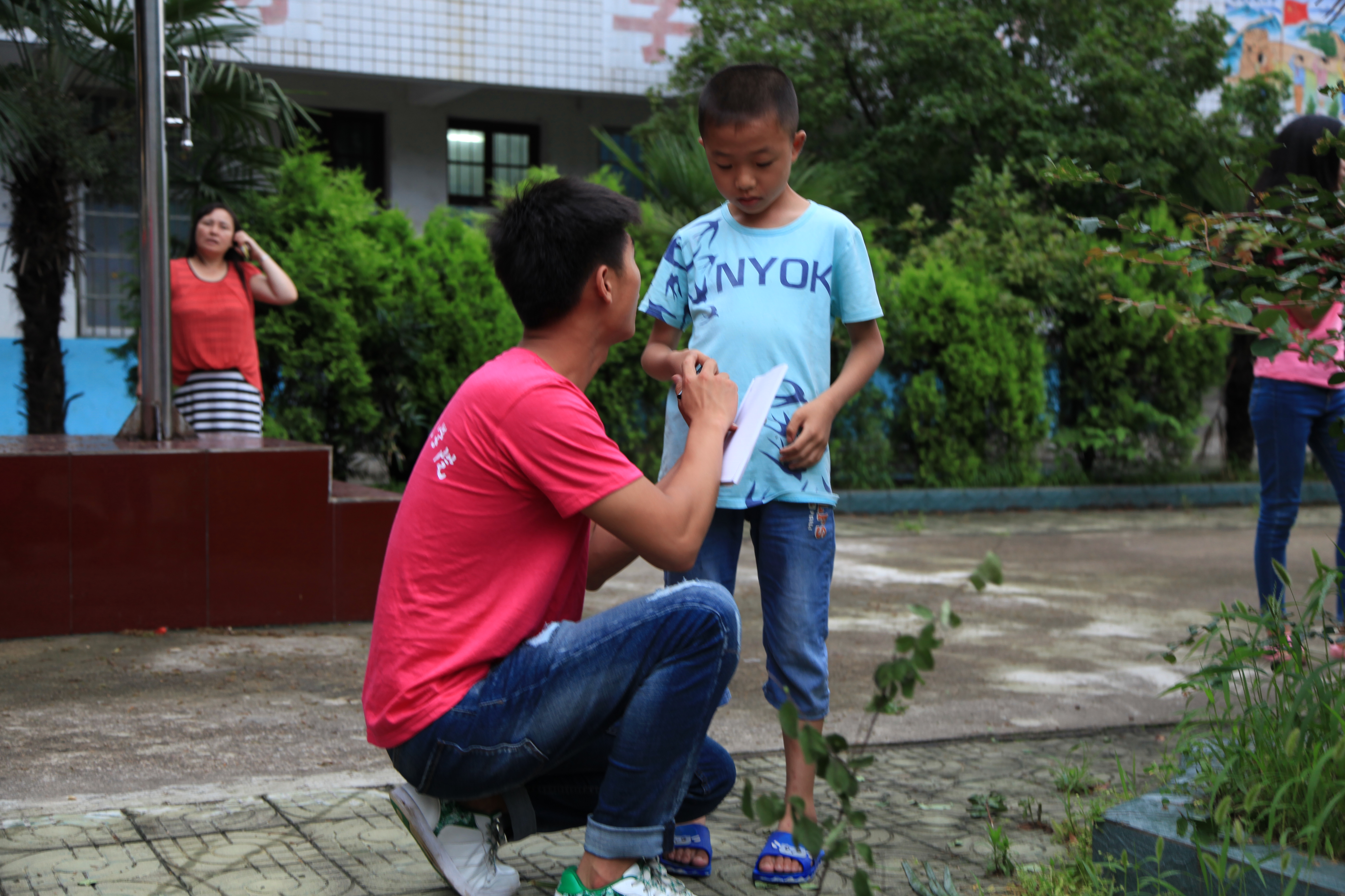 当天下午,城环学院团委老师王淑贤带领16名志愿者抵达了目的地。在经过短暂的休整,王淑贤老师与志愿者们一道前往山店乡水口小学校长黄庆英家中了解当地留守儿童的相关情况,并在黄校长的带领下,前往水口小学开始走访调查。在活动中,志愿者们细致地询问了小朋友们的学习情况和生活状况,并与留守儿童直接监护人进行交流与沟通,了解孩子们的心理状态。面对志愿者们真诚的态度,村民十分配合问卷调查,使走访活动取得了较大进展。留守儿童大都性格比较内向,但他们的心底都有属于自己的梦想和渴望。面对这些可爱天真的孩子,志愿者们不禁动容,纷纷表示要积极承担起自身的社会责任,为留守儿童贡献出自己的力量。在小朋友的指引下,志愿者参观了水口小学,并为孩子们送去精心准备的文具盒、笔记本和水彩笔等小礼物,同时也记录下每个孩子的心愿。最后,孩子们与志愿者合影留念。