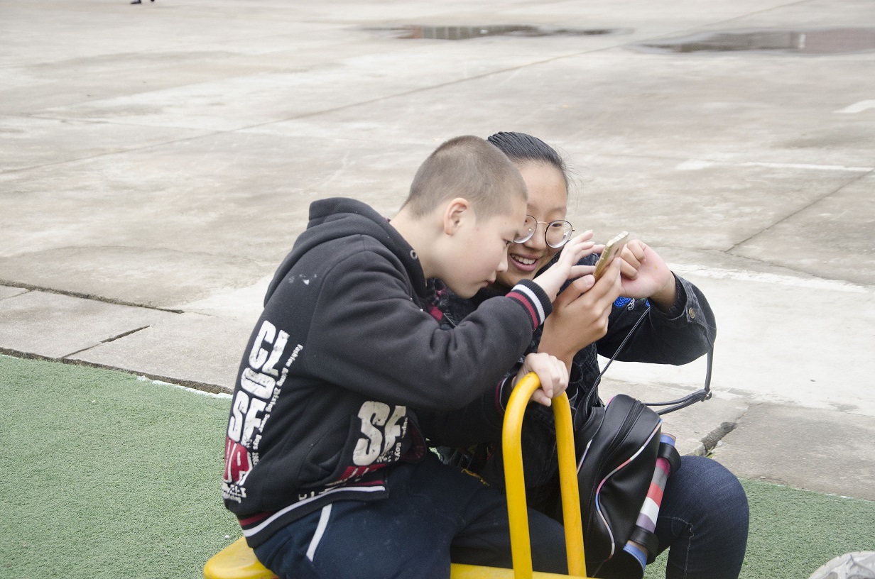 看到志愿者的来访,孩子们欢呼着迎接。志愿者们分成三个小组,将自己带的零食、水果、书籍等物品秩序井然的分发给孩子们,还与孩子们在庭院里开展各项活动,教他们唱歌,给他们讲故事,带他们做游戏。在志愿者的鼓励下,一些活泼的孩子还为志愿者们唱起了优美欢快的歌曲,跳起了精彩可爱的舞蹈志愿者们和孩子们相处的其乐融融,孩子们都露出了甜美的笑脸。他们纯真的眼神和娇嫩的脸蛋让志愿者们忘却了他们或轻或重的残疾,志愿者们纷纷抱起孩子,怜爱的抚摸他们,逗他们开心。前往的志愿者们表示,这些孩子虽然和别的孩子有点不同,但是依然需要得到和普通孩子一样甚至更多的关爱和呵护。