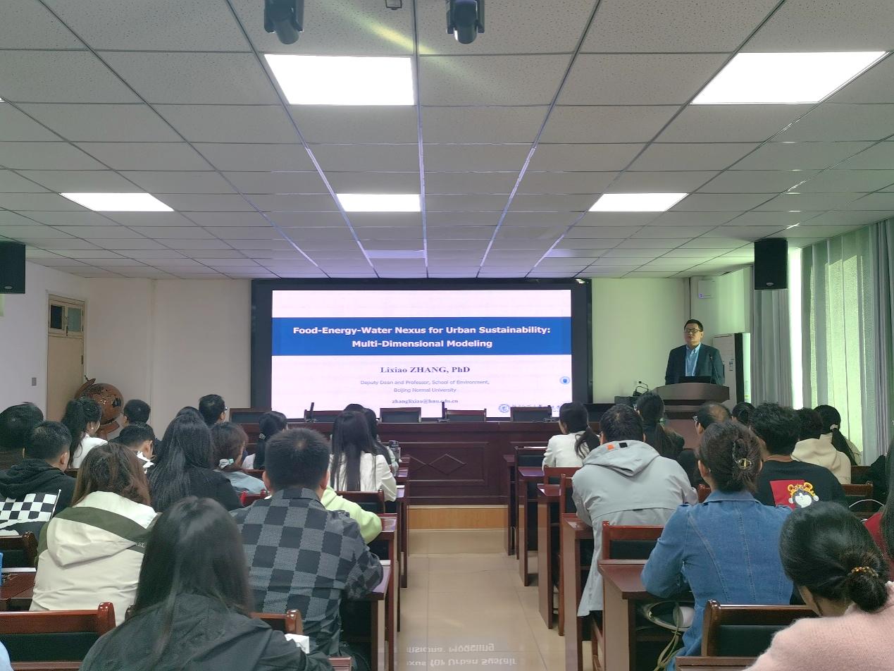 10月29日上午,应304am永利集团官网邀请,北京师范大学张力小教授于理科楼南楼410会议室为永利官网师生作题为“Food-Energy-Water Nexus for Urban Sustainability: Multi-Dimensional Modeling”的学术报告。永利官网青年教师、硕士研究生80余人参加报告会,报告会由副院长王义民教授主持。