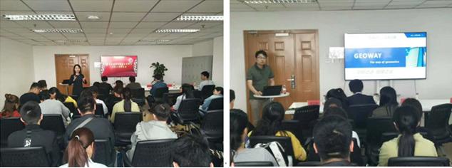 4月18日下午,吉威时代人力资源部校园招聘主管李文静致欢迎词。然后,遥感应用技术总监黎珂,详细介绍了吉威时代定位、发展历程、产品体系及特色优势,提出产品国产化的发展思路。人力资源部主管李琳从GIS人才类型、新入职员工的培养、成长轨迹等方面进行了详细介绍,并介绍了吉威时代2018最新的招聘岗位;会后,分组参观了吉威时代各个部门的工作环境。